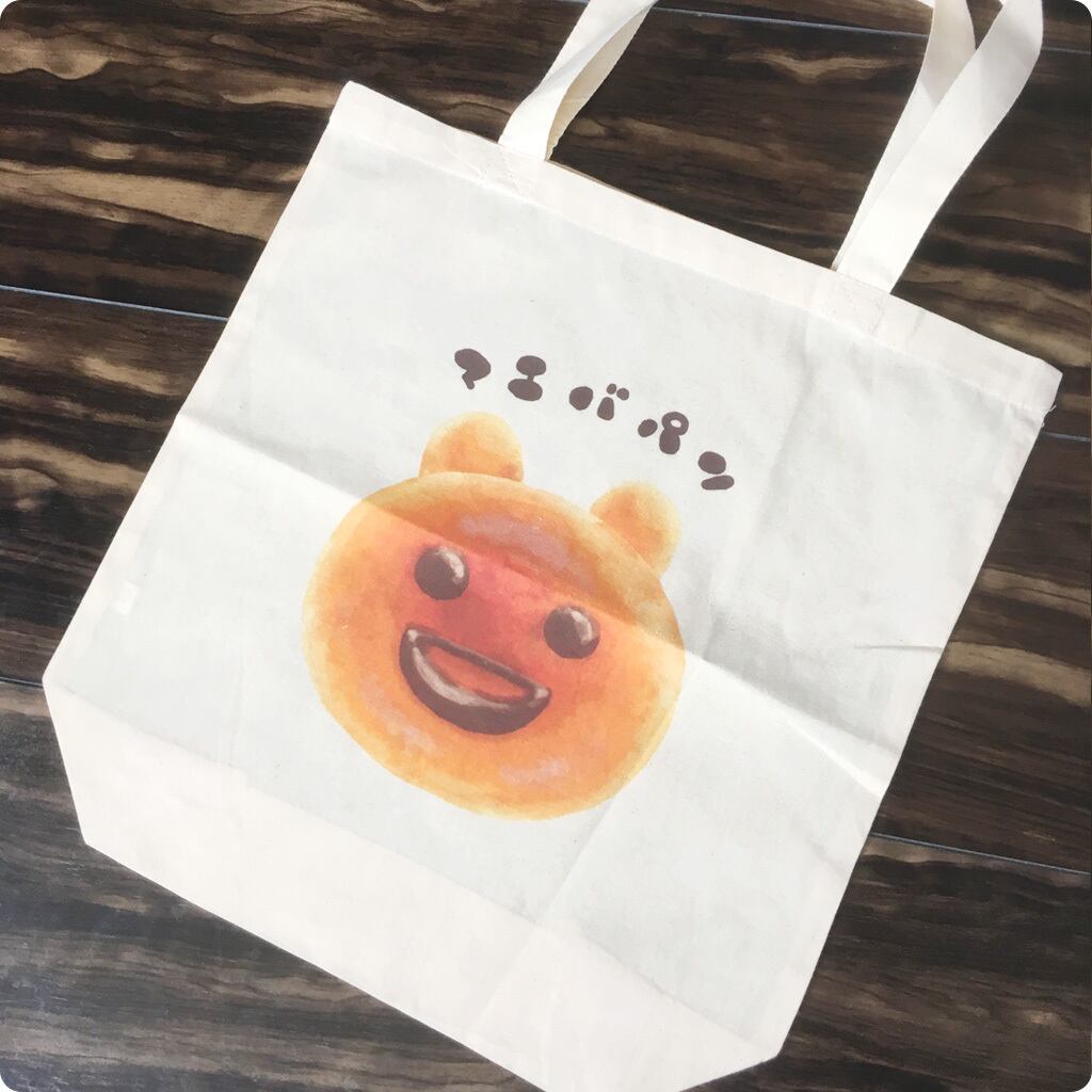 パンになったマエバサン、つまりマエバパンですが、エコバッグになりました。折りたためる薄い素材です。